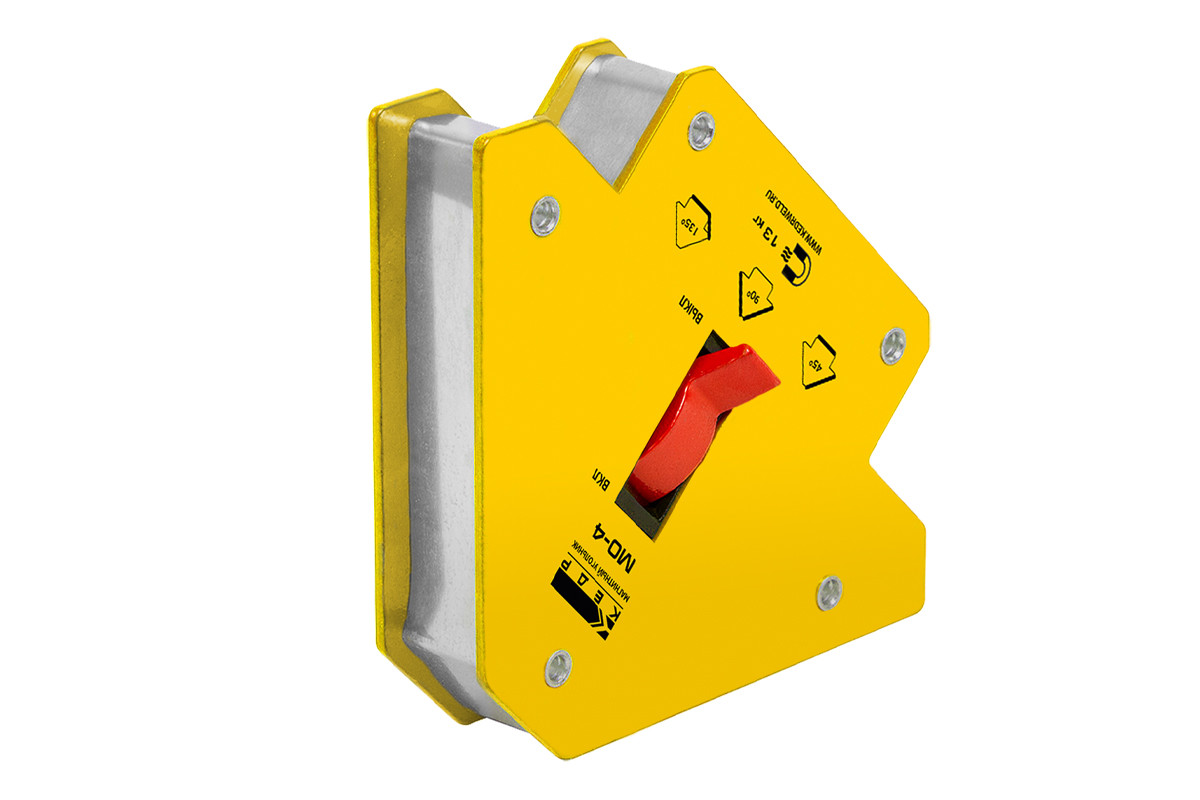 Магнитный угольник МО-4 позволяет производить точное выставление углов в процессе проведения сварочных работ, монтажа стальных конструкций, используется как элемент удержания деталей. Данное приспособление дает возможность осуществлять процесс сварки одному рабочему. Может быть использован для крепления элементов в процессе резки для предотвращения падения частей конструкций.