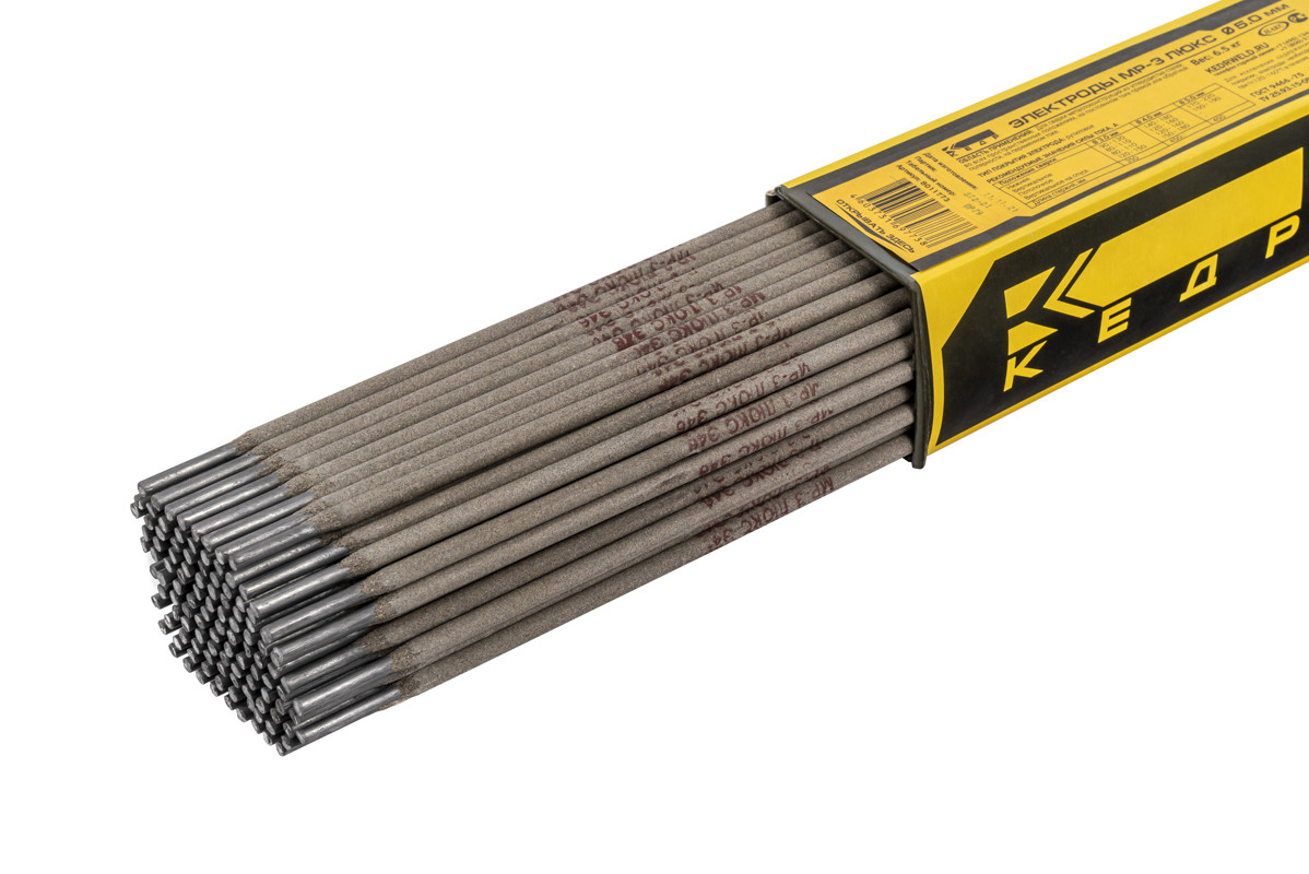 Электроды МР-3 ЛЮКС Ø 5,0 мм (КЕДР) пачка 6,5кг (цена указана за 1 кг.) - предназначены для сварки ответственных конструкций из углеродистых сталей во всех пространственных положениях на постоянном токе прямой или обратной полярности, на переменном токе.