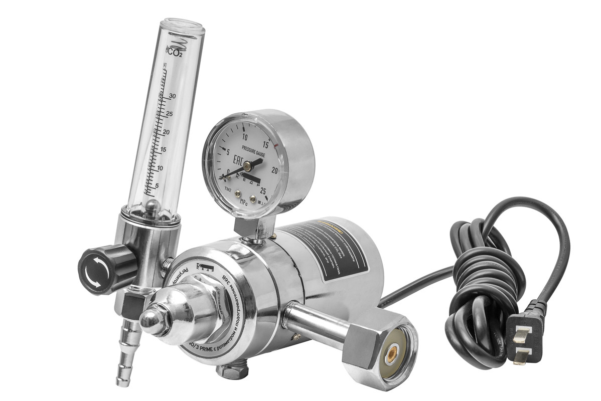 Регулятор расхода КЕДР У-30/АР-40/3 PRIME с ротаметром и подогревателем 36В предназначен для понижения давления защитного газа, подаваемого из магистрали или баллона, и поддержания постоянного заданного расхода при питании постов сварочного оборудования для MIG/MAG и TIG-сварки.