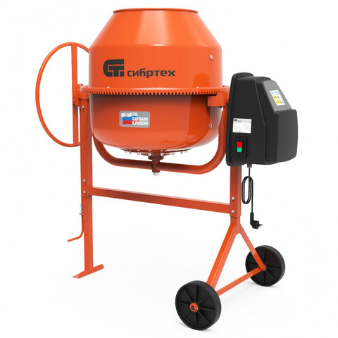 Надежный и экономичный бетоносмеситель Сибртех БСЕ-140 мощностью 500 Вт обеспечивает быструю скорость смешивания бетонных и строительных растворов для малых и средних объектов. Вы без труда приготовите смесь для заливки фундамента, кладки кирпича, клеевой раствор для плитки или сухой цемент для строительных работ объемом до 50 л.Барабан сделан из металла толщиной 1.2 мм, его расширенная форма и прочные лопасти обеспечивают тщательное перемешивание компонентов в однородную смесь.ПреимуществаЗащитный кожух – пластиковый корпус закрывает работающий двигатель от повреждений, а оператора оберегает – от травм и ожогов.Влагозащитный кожух – кнопки управления закрыты от влаги, поэтому бетоносмеситель можно без риска поломок использовать при повышенной влажности.Эргономичный бак – нагрузка на сборочный узел снижена благодаря грушевидной форме барабана, а сами подшипники легко меняются, т.к. конструкция сделана разъемной.Прочная рама – стальные подкосы обеспечивают устойчивое положение работающего бетоносмесителя и придают опорной стойке жесткость, повышая ее ресурс.Удобный механизм наклона – барабан легко фиксируется в нужном положении, что упрощает загрузку компонентов и подачу готовой смеси.Надежные материалы – чугунный венец и стальная втулка ведомого шкива делают бетоносмеситель практичным и устойчивым к интенсивной эксплуатации.Разборная конструкция – барабан разбирается на 2 части, поэтому изделие удобно хранить и транспортировать.Увеличенные колеса – диаметр 20.5 см позволяет легко перевозить бетоносмеситель, независимо от условий на объекте.Защита электродвигателя от перегрева – электродвигатель оснащен тепловым выключателем, встроенным в обмотку, который защищает двигатель от перегрузки.