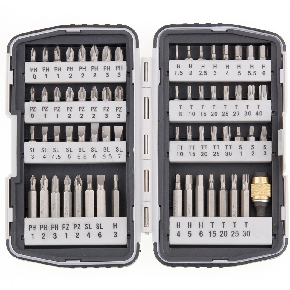 • Набор бит Matrix арт. 11327 из 64 предметов используется совместно с шуруповертами и отвертками типа при работе с резьбовыми соединениями. Кроме бит длиной 25 мм в комплект входит 15 насадок длиной 50 мм, которые обеспечивают удобство работы в труднодоступных местах.ПреимуществаПрочность и высокая коррозионная стойкость — биты из стали CrV подходят для интенсивных работ.Магнитный адаптер позволяет быстро менять биты, повышая скорость работы с крепежом различного типа.За счет магнитных свойств адаптера бита не выпадает при закручивании и откручивании крепежа, поэтому работать с таким набором комфортнее.Биты не потеряются при работе и транспортировке, т.к. в поставляются в пластиковом боксе.