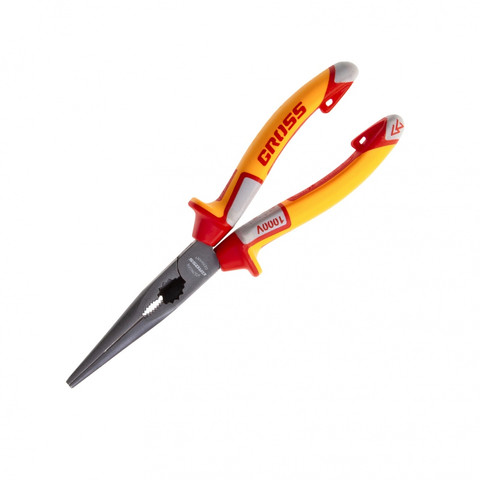 Длинногубцы прямые, диэлектрические рукоятки до 1000 В, трехкомпонентные рукоятки, 205 мм Gross