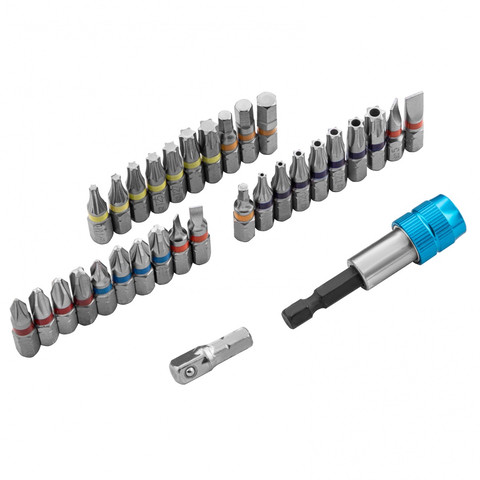 • Набор бит с магнитным адаптером Gross 11363 из стали S2, в пластиковый кейсе, включает в себя 32 предмета для монтажа и демонтажа резьбовых соединений. Набор подойдет для выполнения ремонтных, монтажных и слесарных работ, в том числе для сборки мебели, бытовых электроприборов, самокатов и велосипедов. В комплект входят биты самых актуальных размеров, переходник с шестигранника на квадрат 1/4 дюйма и магнитный адаптер для бит.ПреимуществаШирокая комплектация — в одном наборе представлено 6 типов бит: PH и PZ калибров 1-3, SL калибров 3, 4, 5, 6, TORX и TORX Tamper (10, 15, 20, 25, 27, 30, 40), HEX 3-6