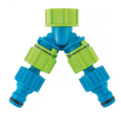• Двухканальный пластиковый разветвитель Palisad LUXE 66427 позволяет подключить 2 водоразборные линии к крану или отводу с внешней резьбой 3/4 дюйма. Будет полезен при монтаже поливочной системы на приусадебном участке.ПреимуществаИзготовлен из ударопрочного ABS-пластика, поэтому устойчив к повреждениям, не боится коррозии и прослужит долго.На каждом отводе имеется вращающийся фиксатор, позволяющий быстро закрепить или снять шланг.Детали разветвителя выдерживают давление водного потока и образуют надежные соединения без протечек.