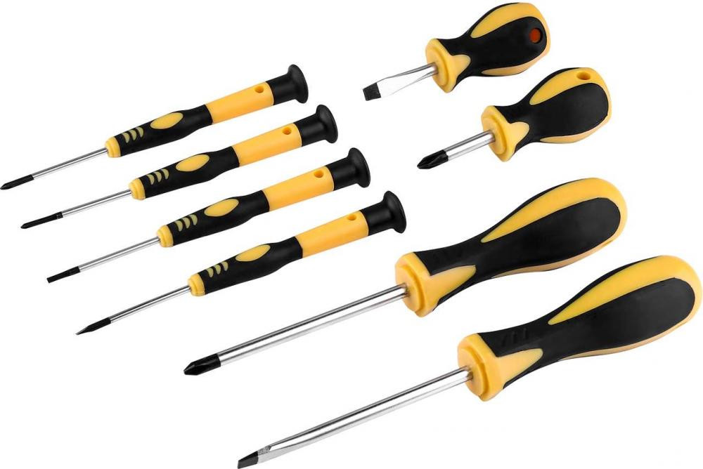 Набор отверток DEKO SS08 (8 предметов) предназначен для выполнения монтажных и демонтажных работ с различными резьбовыми соединениями. В набор входят:PH6x38, 6x100, 2.5, 3.0;SL6x38, 6x100, 2.5, 3.0.